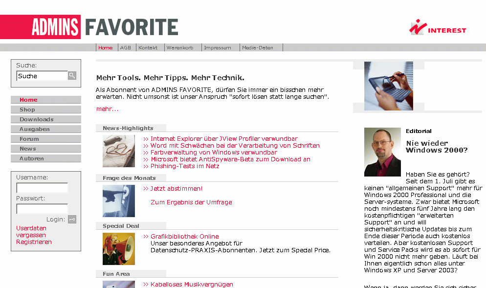 Die von INTEREST herausgegebene Zeitschrift "Admins Favorite"