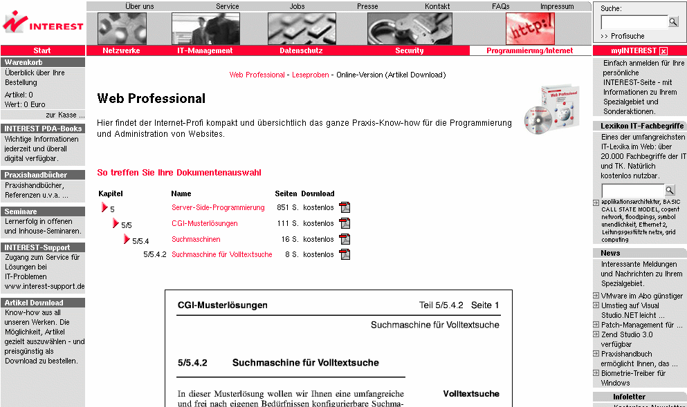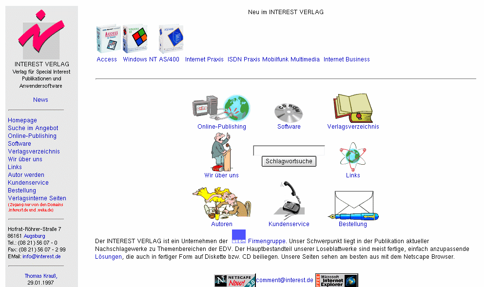 Die erste Web-Seite des INTEREST-Verlags zusammen mit