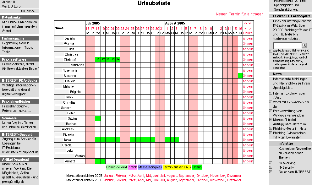 PHP umgestellt. Dabei wurde eine Online-Termindatenbank mit
